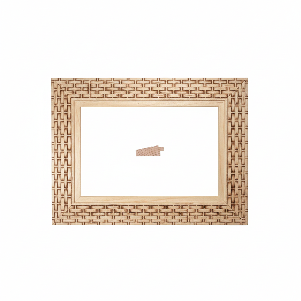 Moldura de Madera de Pino de Primera, Linea para Marco, Tipo Plana, de 20mm de espesor x 053mm de ancho. con Textura, sin Acabado.
