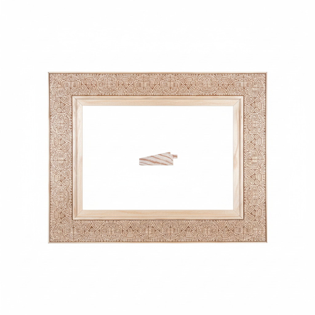 Chaflan - MAYA/arte mexicano Moldura de Madera de Pino de Primera, Linea para Marco, Tipo Plana, de 20mm de espesor x 058mm de ancho. con Textura, sin Acabado.