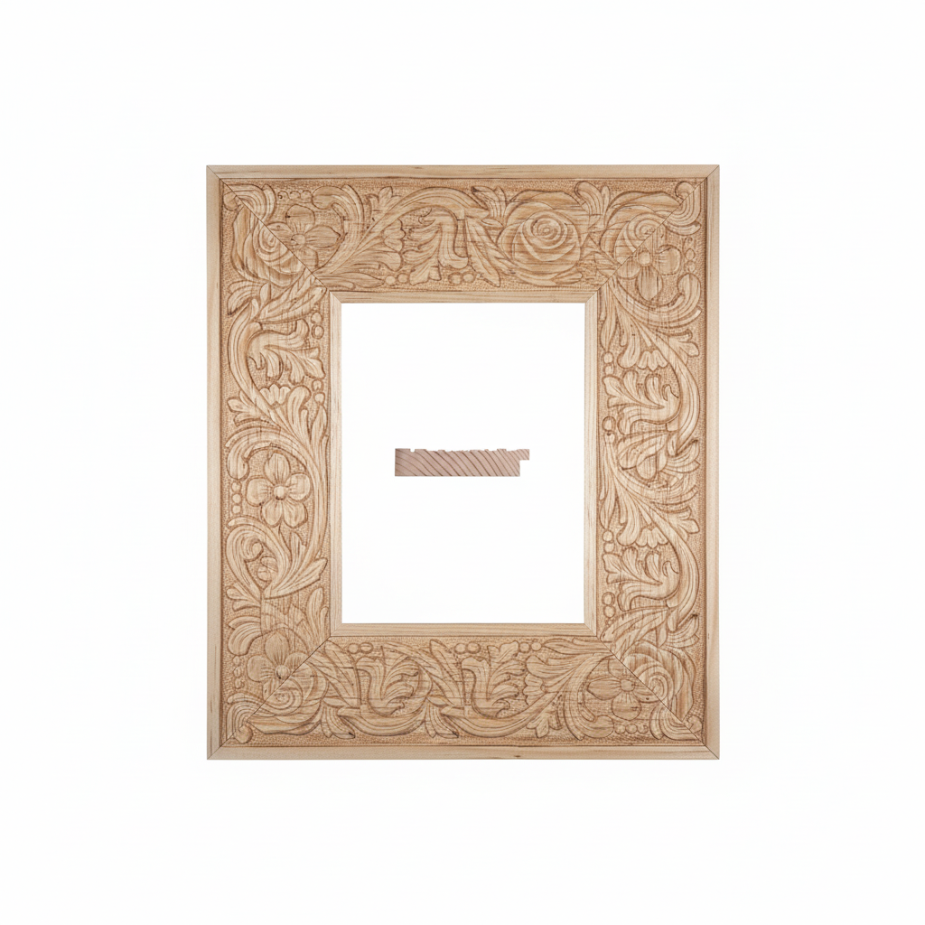Moldura de Madera de Pino de Primera, Linea para Marco, Tipo Plana, de 20mm de espesor x 095mm de ancho. con Textura, sin Acabado.