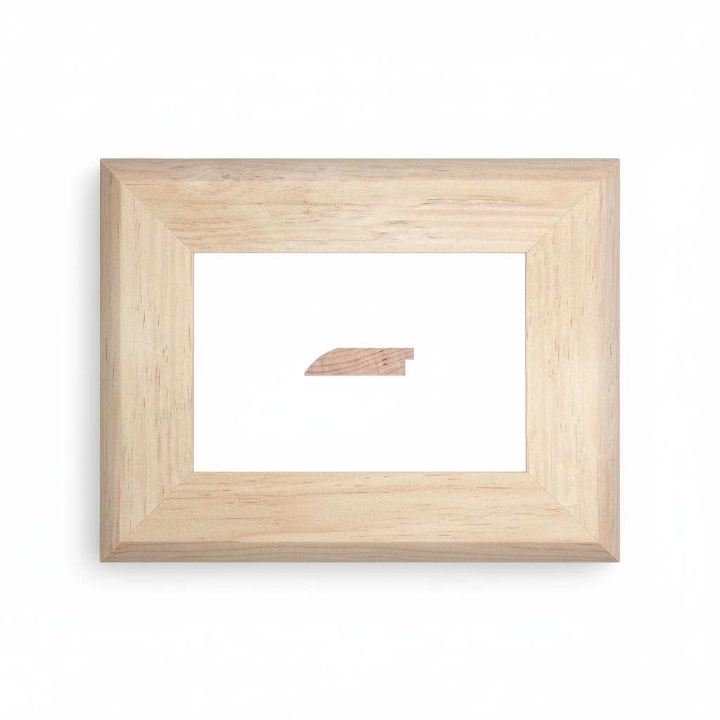 Moldura de Madera de Pino de Primera, Linea para Marco, Tipo Plana, de 20mm de espesor x 080mm de ancho. sin Textura, sin Acabado.