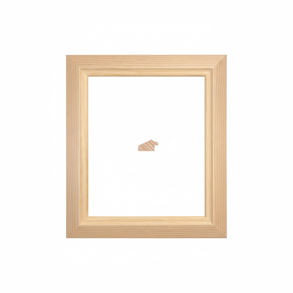Moldura de Madera de Pino de Primera, Linea para Marco, Tipo Plana, de 20mm de espesor x 035mm de ancho. sin Textura, sin Acabado.