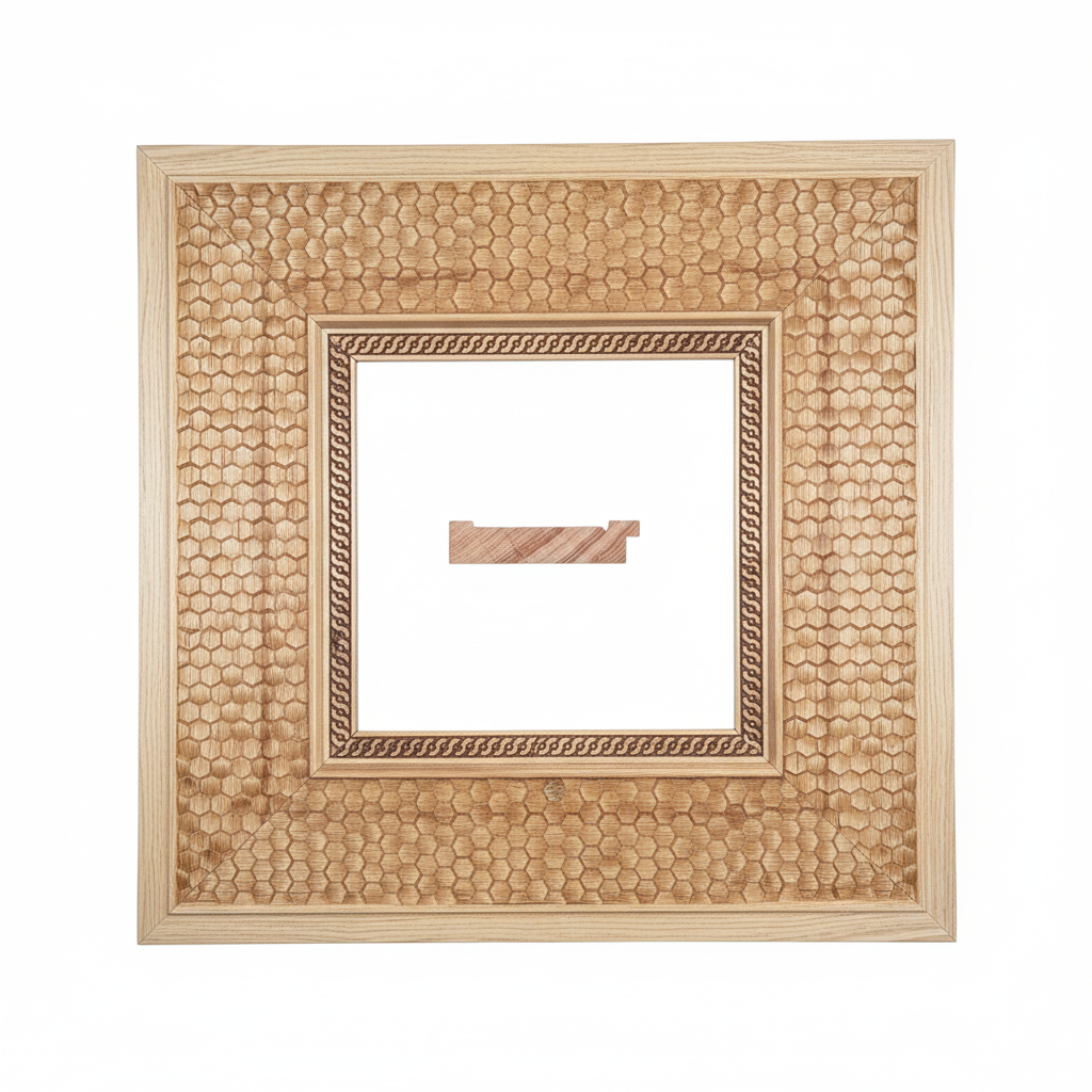 Segovia 90 panal Moldura de Madera de Pino de Primera, Linea para Marco, Tipo Plana, de 20mm de espesor x 090mm de ancho. con Textura, sin Acabado.