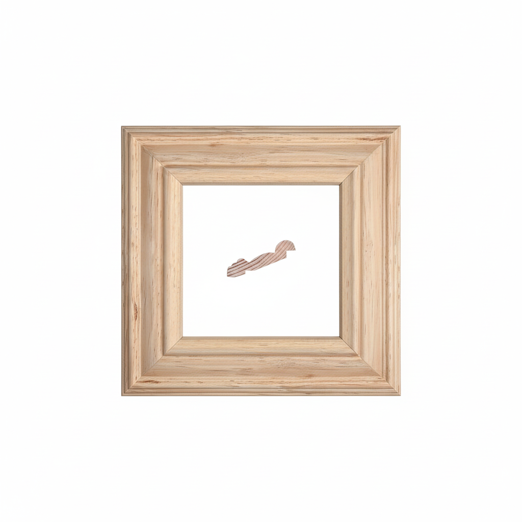 Moldura de Madera de Pino de Primera, Linea para Marco, Tipo Faldon, de 20mm de espesor x 087mm de ancho. sin Textura, sin Acabado.