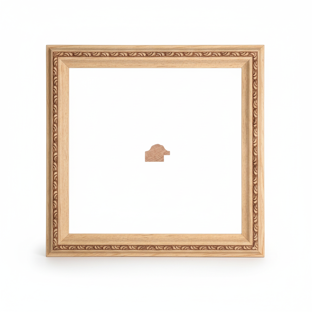 Moldura de Madera de Pino de Primera, Linea para Marco, Tipo Plana, de 20mm de espesor x 026mm de ancho. con Textura, sin Acabado.