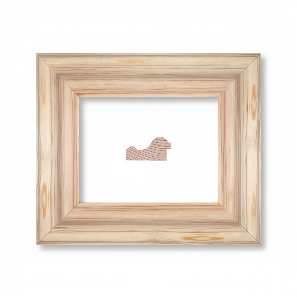 Moldura de Madera de Pino de Primera, Linea para Marco, Tipo Plana, de 35mm de espesor x 070mm de ancho. sin Textura, sin Acabado.