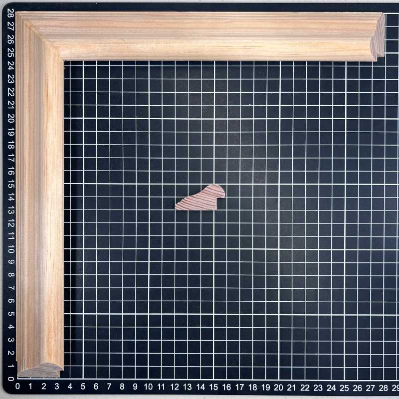 Moldura de Madera de Pino de Primera, Linea para Marco, Tipo Plana, de 20mm de espesor x 039mm de ancho. sin Textura, sin Acabado.